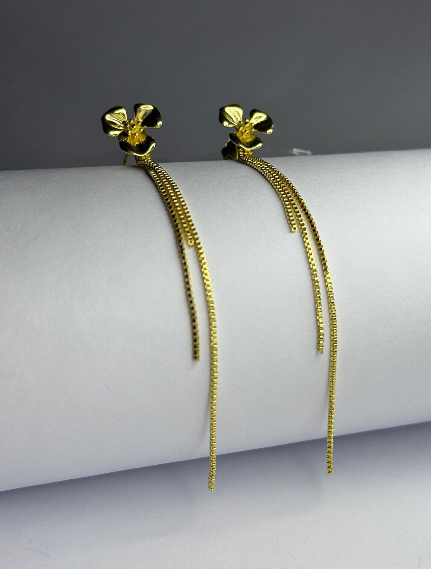 Joia banhada em ouro 18K e finalizada com verniz Diamond, que intensifica o brilho e preserva o acabamento impecável. Hipoalergênica, oferece conforto absoluto em cada uso. Brinco lírio correntes 3cm/5cm/7cm.